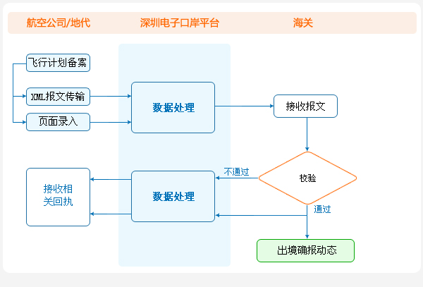 深圳电子口岸平台提供出境确报前台录入及XML报文传输方式。 在申报航空器动态前,必须要申报当日飞行计划。