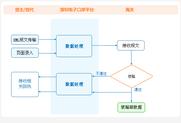 深圳电子口岸平台为企业提供装箱单的报文导入和页面录入功能,形成电子装箱单发送海关,并接收相关回执